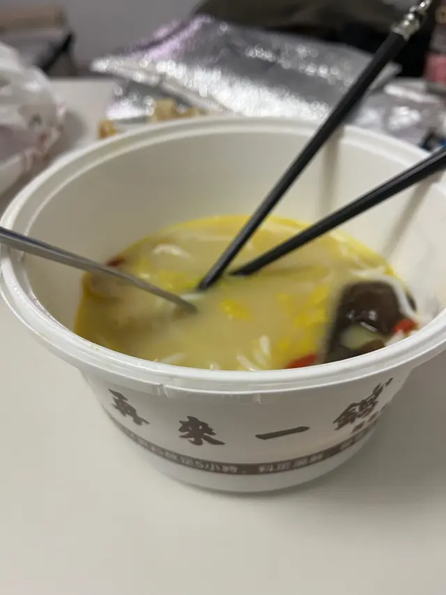 送到嚟嘅時候碗湯有一半,另外仲有一包用保溫袋裝住嘅湯底,呢包夠晒熱,可能驚個碗唔保溫,因為始終雞湯凍咗唔好飲冇咗個鮮味,加埋碗熱湯落去就啱啱好啦。