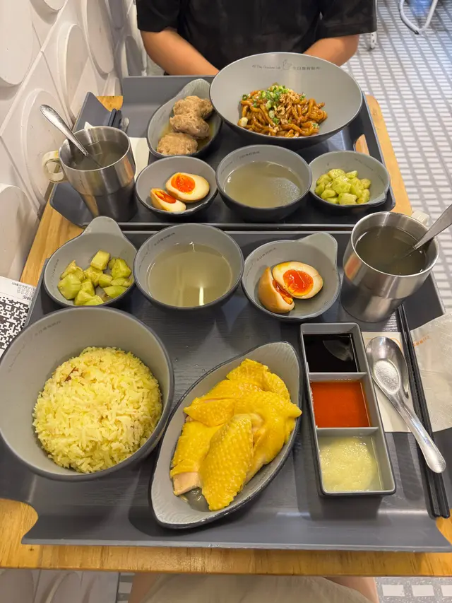包括雞翼、雞胸、上髀,仲配香飯、無味精靚湯同醬油小黃瓜🥒。雞肉嫩滑得嚟有雞味,食得出係低溫熟成處理,好自然香味。三色醬汁(黑醬油、辣醬、薑蓉)各有特色,尤其辣醬🔥微甜中帶辣,幾有層次。湯底清淡但唔寡,小黃瓜爽脆開胃,整體好舒服嘅一餐✨