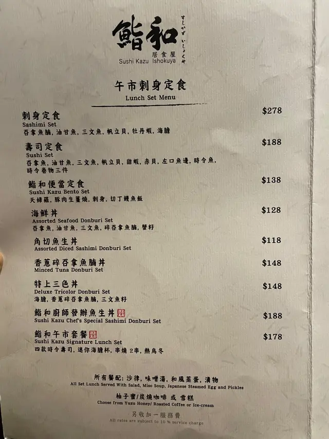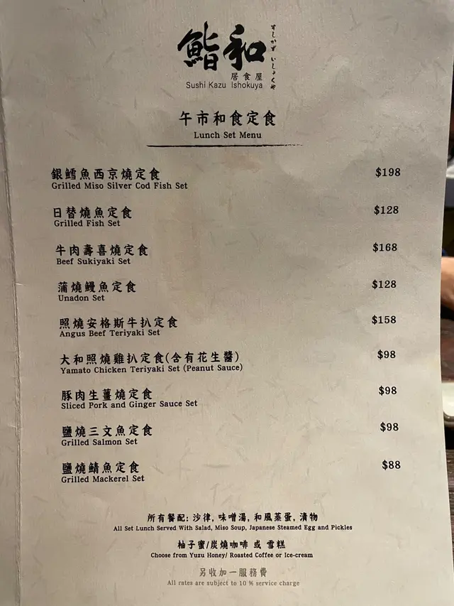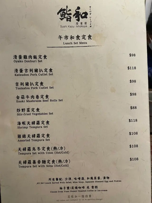 兩餐配的胡麻汁三文魚菜沙律,菜新鮮、胡麻汁酸度適中,餐前清醒味蕾;和風蒸蛋蛋味不算濃,但滑溜似吃布甸;終於有味噌湯不鹹,要數這間。跟餐的抹茶雪糕牛奶味凌駕於茶味之上。