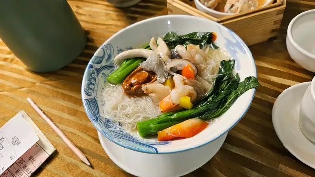最後,一個鮑魚鮮蝦米粉,無記錯,四十零蚊。