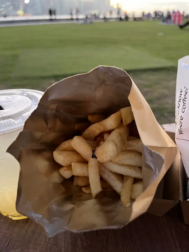 搵到靚位望住靚景食又加分. 真係好食,個包塊肉又厚又大而且好扎實真材實料,面包皮熱而香脆,芝士蕃茄等配菜亦新鮮,咁$120 一個classic burger 都可以接受. 炸薯條好大份,厚條啖啖薯肉炸得香口,超正. 加埋杯涷飲,爽. 我哋二人share全部都覺得幾飽.
