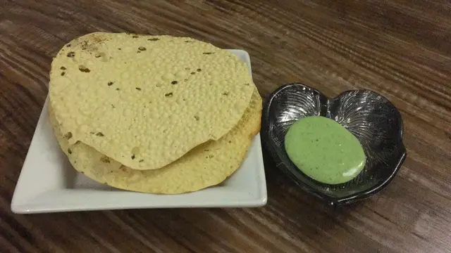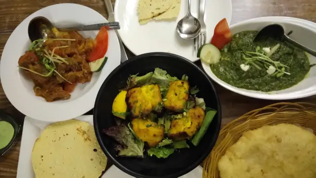 芝士菠菜很惹味, 菠菜茸配一顆顆大大粒印式芝士, 很濃的咖喱和香料, 配合薄餅進食, 很美味可口! 另外是名為蔡蘭咖喱羊肉, 店員說此名來源皆因蔡蘭曾稱讚此羊肉好吃。的確, 羊肉質場軟淋, 易咬又入味, 件數多, 微辣, 配餅或飯都會很正! 兩款烤餅是薄荷麵粉餅和白色炸鬆餅, 前者有數層, 薄荷葉碎在餅面, 但沒有強烈薄荷味, 厚身, 很實在飽肚。一定要食炸鬆餅, 其質感軟身, 內裡很鬆, 但不會感到肥膩和熱氣, 而且它上菜時像個大泡芙形狀, 很特別!
