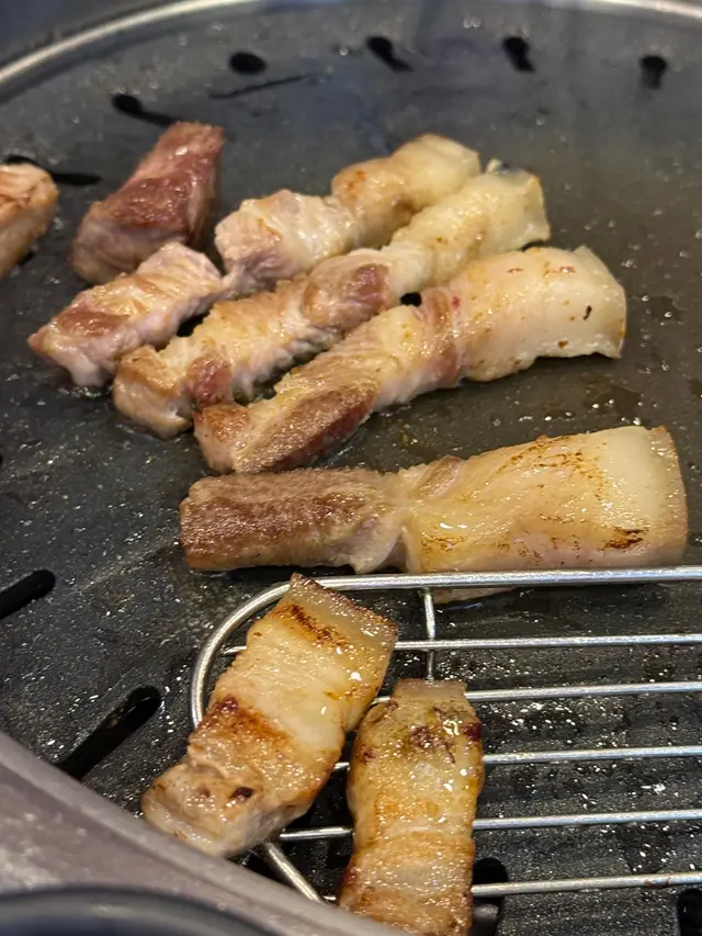 肉質品質和韓式風味的還原上都很出色,原本覺得會不夠,但食完覺得好飽,啲肉份量好足。餐廳好適合朋友聚會、情侶聚或家庭樂。濟洲五花肉焦香十足,肉質肥瘦相間,唔會燒完乾哂,看似油卻不膩,肉汁豐富,唔包生菜食一樣咁和味。濟洲豬肩肉表厚但唔係脂肪,咬落煙韌,肉質外脆內嫩,包埋生菜食,口感更豐富。韓豚調味排骨甜甜地,肉質軟腍,帶濃郁醬汁風味,而排骨肉香入味,配生菜一流,中和甜膩。