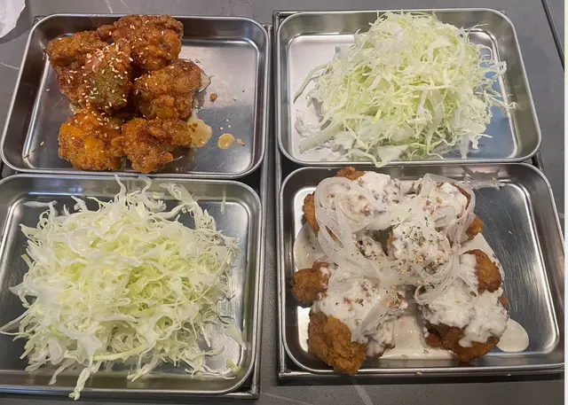 乳酪洋蔥炸雞: 創新口味令人驚喜!炸雞上鋪滿手切洋蔥絲和特調乳酪醬,視覺效果滿分。洋蔥的清爽微辛完美中和炸物的油膩感,乳酪醬濃郁順滑,帶有淡淡酸香,與酥脆炸雞形成絕妙對比。建議將洋蔥、醬汁和炸雞一起入口,體驗豐富的層次感。特別推薦給喜歡清爽口味的食客。