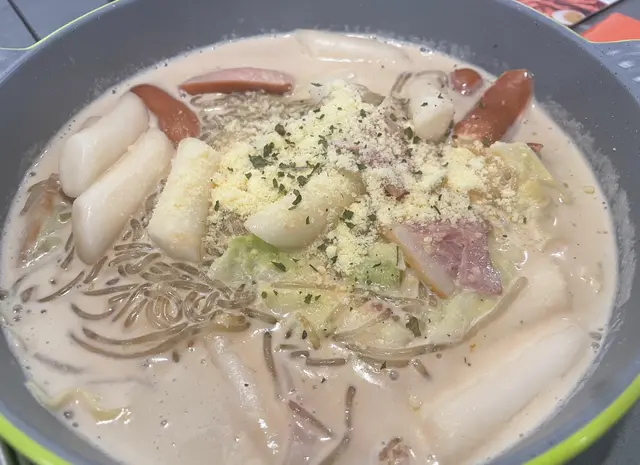 卡邦尼年糕($88): 邪惡度爆表的人氣小食!Q彈的韓式年糕裹上濃稠的卡邦尼醬汁,奶香濃郁卻不膩口。醬汁中加入了香腸,增添鹹香風味。年糕煮得恰到好處,外軟內韌。