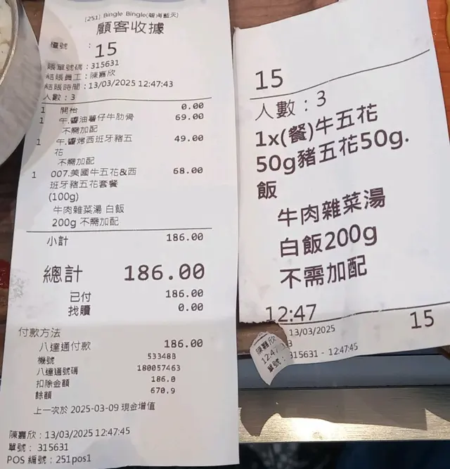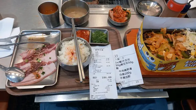 韓式牛肉湯泡菜白飯任食 揾食肥華等級42025-03-132K 瀏覽 關注 揾食肥華在社交平台知道,在此間韓式燒烤食店,祇要柯打一個僅售幾拾蚊嘅餐類食品,就可以無限免費,添飲韓式牛肉湯,三種汽水及添食四款泡菜,和珍珠米白飯,咁大嘅誘惑真喺吸引到,揾食肥華和靚媽在3月13日專誠到此店食午餐。 今日在此店食到嘅自烤肉類,美國牛五花和西班牙豬五花,及熟食醬油薯仔牛肋骨及醬烤西班牙五花,味道都有B至B+水評,雖然份量較細但有任飲任食嘅,牛肉湯,汽水泡菜和白飯嘅加持,令到今日呢個埋單唔使$2OO嘅午餐,喺抵食之選,加上餐後靚媽玩扭蛋機,抽到三份錯嘅獎品,呢餐直情喺超值呀 ⭐️⭐️⭐️⭐️⭐️⭐️👍🏻👍🏻👍🏻👍🏻👍🏻👍🏻111以上食評乃用戶個人意見 , 並不代表OpenRice之觀點。讚好分享韓式牛肉湯泡菜白飯任食 Bingle Bingle 空中列車烤肉 https://s.openrice.com/QrbT0nyaj00檢舉 張貼 評分4味道4環境4服務4衛生5抵食用餐途徑堂食