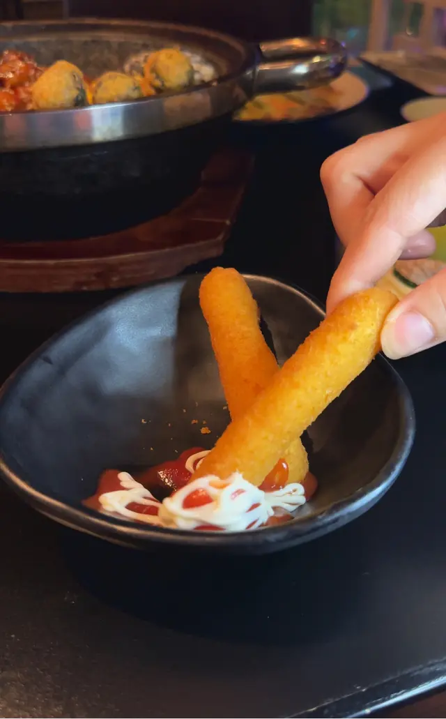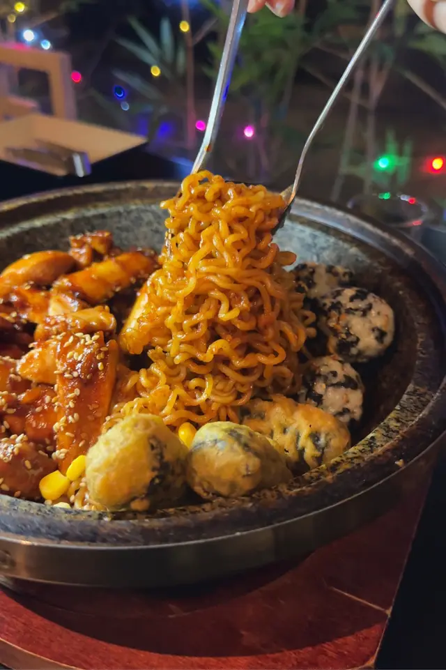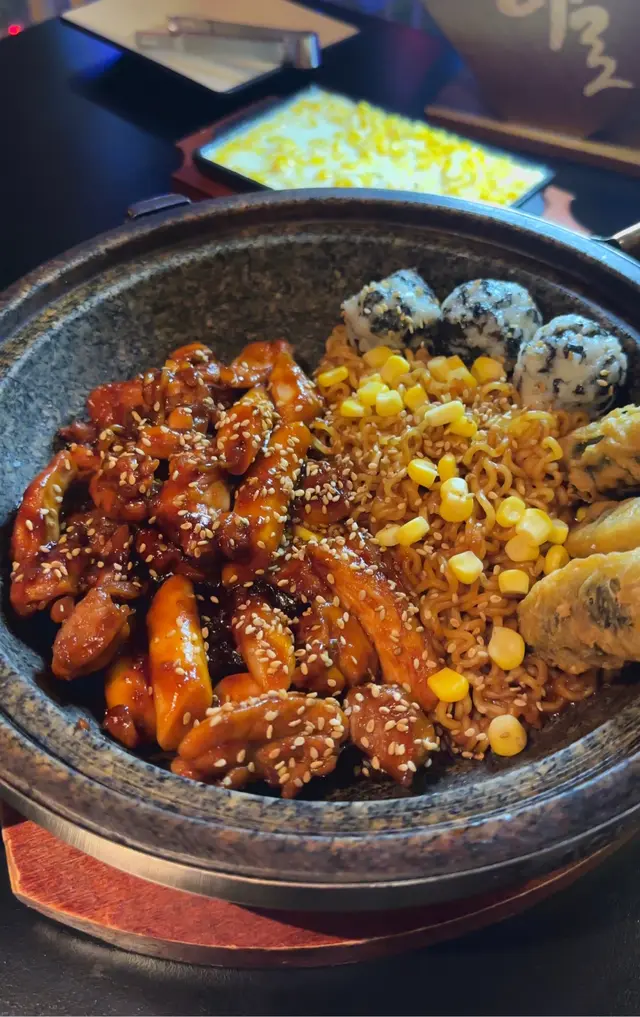 最期待既菜式!😍鮮嫩多汁雞肉塊裹滿香辣醬汁,充滿濃郁韓式風味🍜 炸粉絲紫菜卷同Q彈年糕吸收了醬汁精華,口感豐富超有嚼勁😝係miss mochi食過最好食既年糕🥹搭配香甜粟米粒同海苔飯糰,更增添層次感😎辣度適中😝絕對係韓式料理經典之作!💯兩個人食絕對夠!