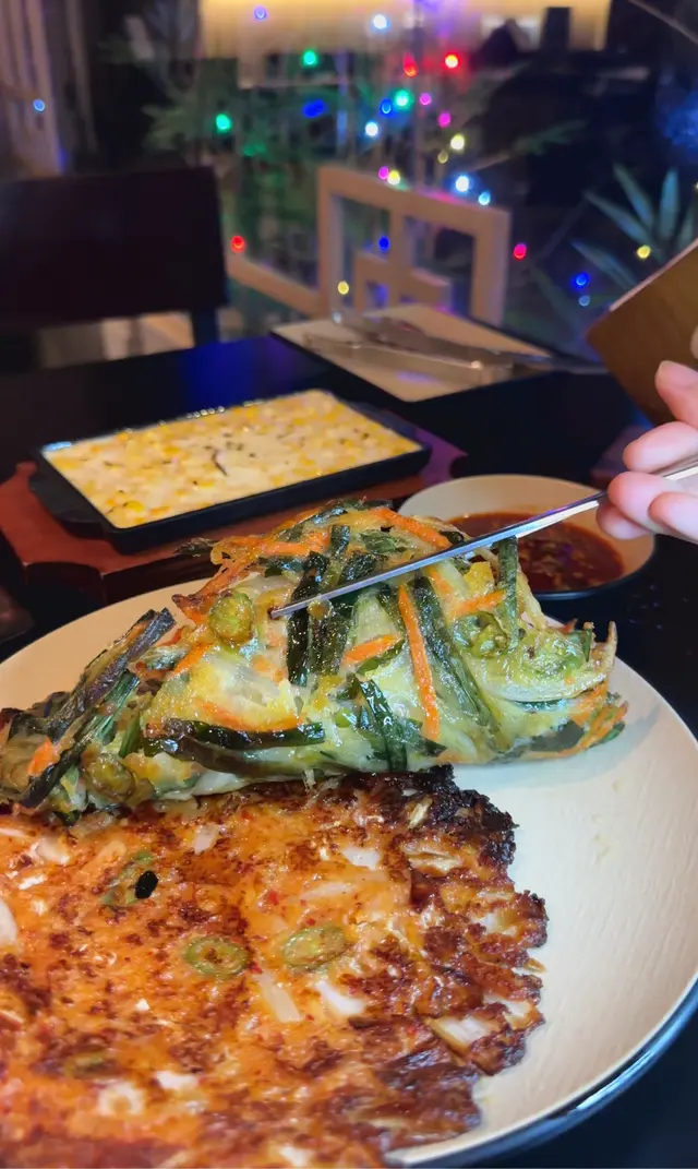 除咗二人Set🤗我地仲點咗韓式煎餅排盤,泡菜煎餅同韭菜煎餅。泡菜煎餅甘香酥脆 😋酸辣可口😜充滿泡菜獨特風味😝韭菜煎餅則香氣撲鼻🤓中間就有好多餡料😗口感清爽😏兩種煎餅都好好食🥹