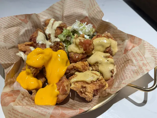 佢有 5種醬可以揀嘅, 我哋揀咗: 芝士醬+ 蒜香蜜糖蛋黄酱 + 黃金皮蛋醬~