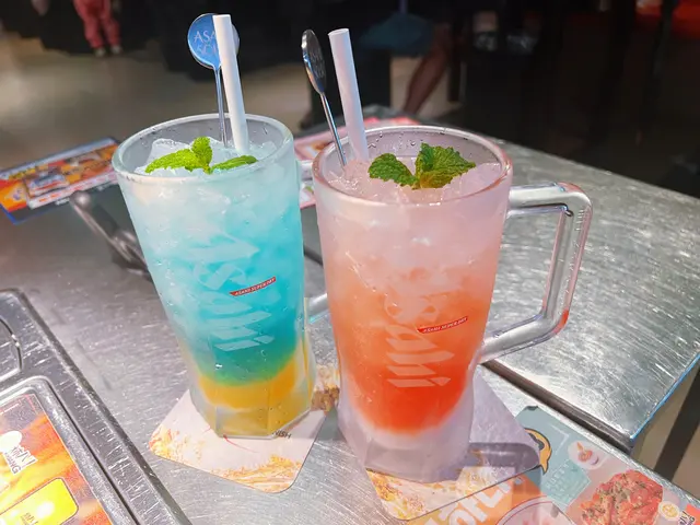 飲品方面,有得自取任飲汽水同果汁,仲可以另叫有氣果酒,而家做緊優惠,叫第二杯有氣果酒就有半價! 我地叫左紅燊莓朝日有氣果酒同藍燈朝日有氣果酒,賣相靚啊! 兩杯都係清新,而紅燊莓就比較香甜我幾鍾意! 是晚都好熱鬧啊唔少客人一班班朋友咁一齊食,好開心!