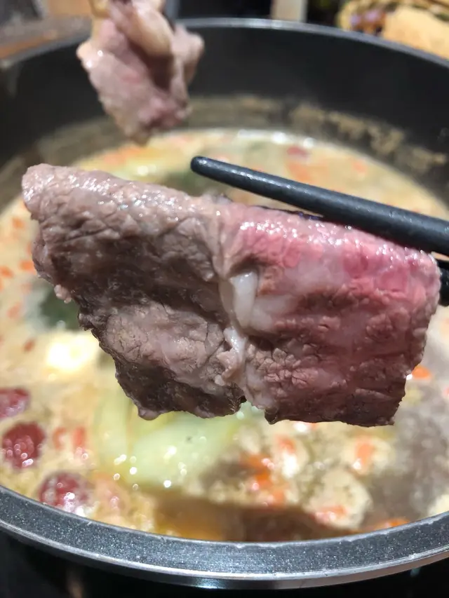 頂級安格斯牛係即叫即切 果然安格斯牛係唔同啲🧚‍♂️ 一睇個花紋同色澤就知好新鮮🧜‍♂️ 脂肪比例適中 同肥牛爭好遠🧜‍♂️ 輕輕灼幾下就食得 入口好有牛味 一啲都唔會鞋 食到停唔到口🧛‍♂️🧛‍♂️
