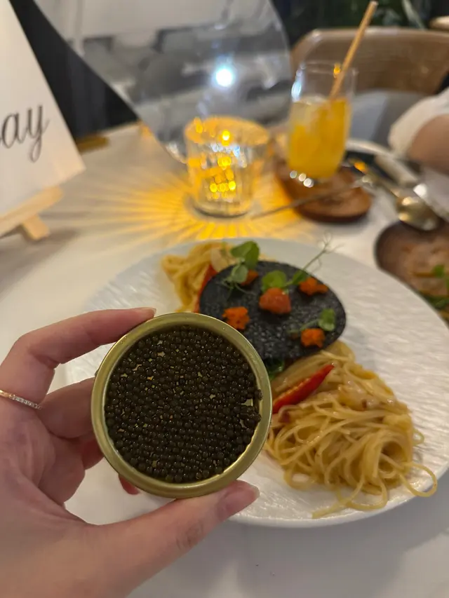 天使麵煮得啱啱好,彈牙有咬口。明太子同蒜香欖油已經非常惹味,加上卜卜脆嘅飛魚籽同矜貴嘅西伯利亞魚子醬,鹹鮮味瞬間爆發,每一啖都係享受。