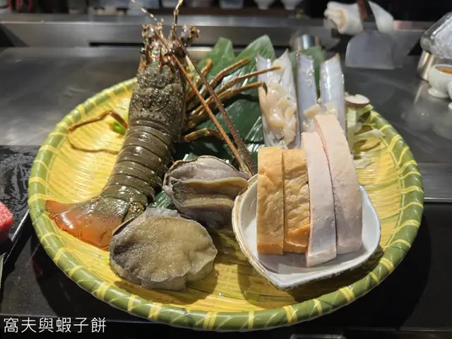 原隻鮮活南非鮑魚大隻厚肉,先吃原味的,再蘸忌廉海苔汁來吃,昆布拌忌廉海苔汁也很好吃。