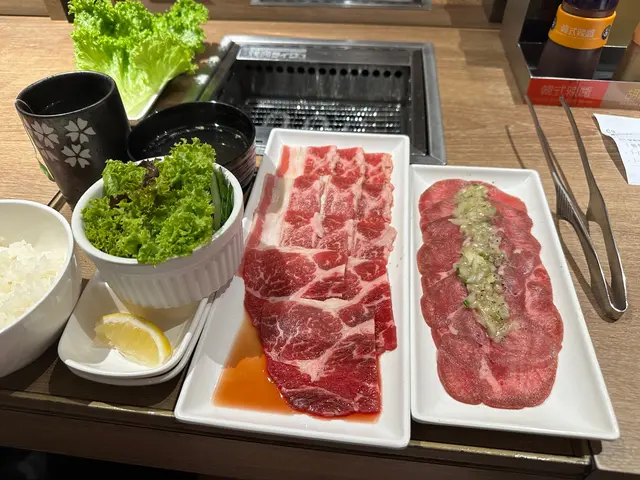 用咗推介嘅燒法去整佢嘅牛舌,牛舌包住鹽蔥醬打對摺咁樣燒,令到鹽蔥味大爆發,同埋keep住牛舌咁juicy 然後呢一set仲配埋牛板腱同牛五花,用生菜包住,連埋泡菜、韓式辣醬一齊食,同一時間食晒三款牛,好正!