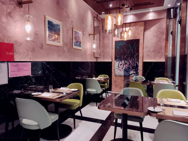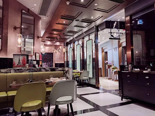 餐廳用左粉紅同淺金色做主調,帶啲輕奢少女風,座位都好鬆動闊落。