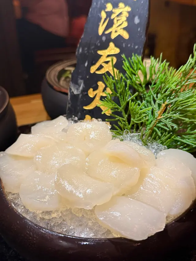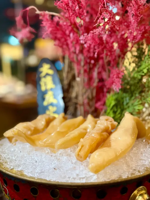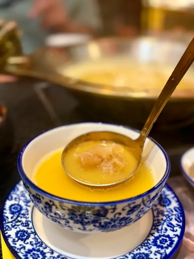 店員教我哋倒咗啲半生熟雞肉落去,然後等雞湯滾起,先飲一碗雞湯暖吓胃,然後先再食其他嘢(雖然之後加湯都係雞湯,但係冇第一次咁濃郁同埋始終有其他食材擺入去冇一開始咁鮮)。呢碗雞湯不得了,連我老竇飲完都忍唔住話好飲🤩🤩 雞湯金黃濃郁,極鮮甜同埋好香雞味,一定好滋補!雞肉嫩口唔嚡。花膠筒就散熱住乾冰咁到場,Q彈厚實。