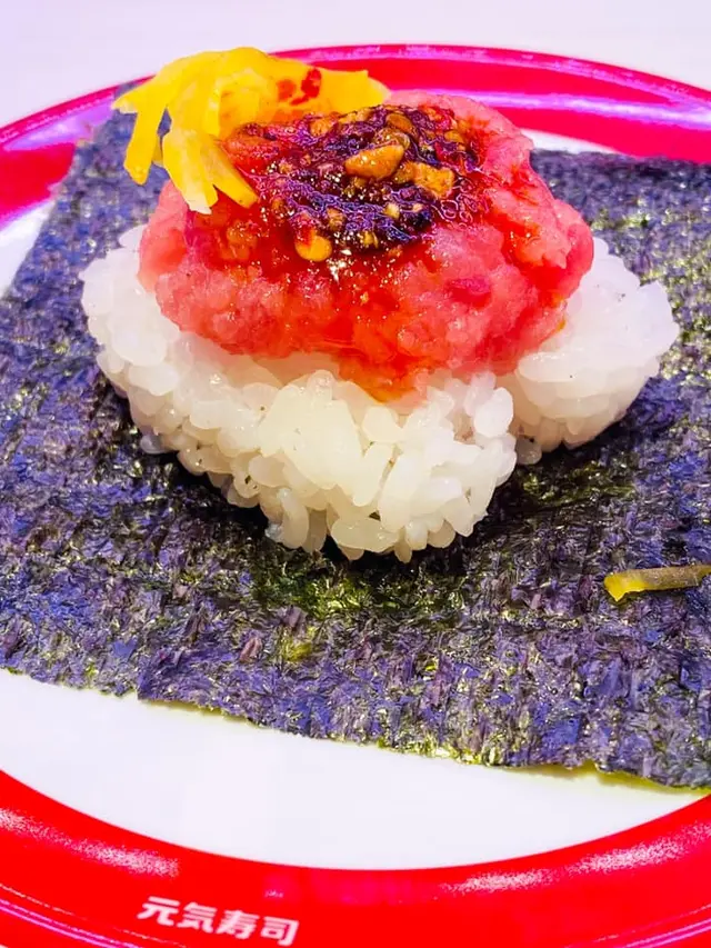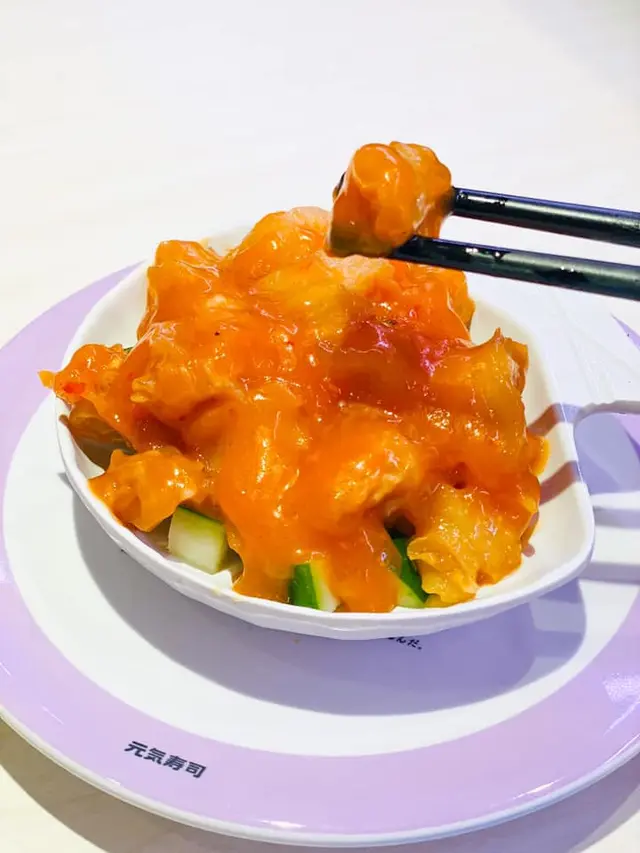 吞拿魚蓉鮮紅帶油光,而且花卷足足有兩件壽司份量嘅飯,所以咬落啖啖口感豐富,再配合頂層嘅辣椒醬🌶,惹味又醒胃