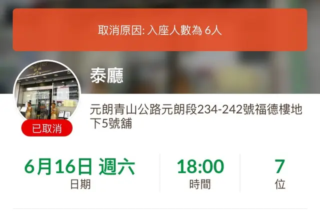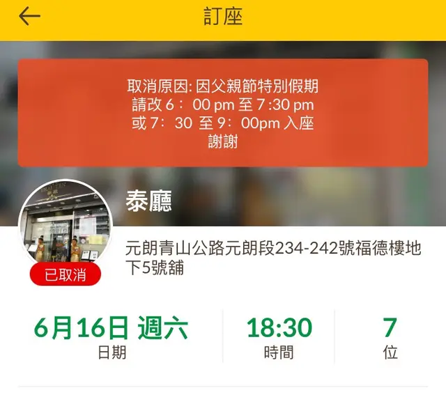 今朝打開open rice ,竟然又被除消訂枱。