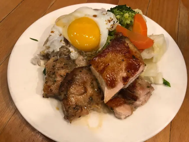 香蔥雞扒煎蛋糙米飯$58配牛蒡茶(熱)