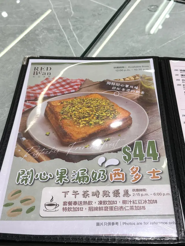 食物ok,算多位的茶記 Richard1Chan等級32025-09-02266 瀏覽 關注 行完Aeon,剛好三點多下午茶時段,間間餐廳都排長龍,因餐廳地方大,等咗5分鐘左右就有位,so luck。被餐牌份開心果漏奶西多士圖片吸引咗,就叫一份+齋啡,另外點咗脆皮生炸雞脾+凍檸茶,蔥油雞扒煎蛋飯+齋啡。西多士流心,不過不失,炸雞脾D皮真的脆,肉質不太亁,蒽油雞扒D肉都軟,蔥油都恰到好處不太鹹,食物整體OK。飲品正常,為獨杯咖啡用紙杯有點怪怪地。下午茶A餐好似只係$29(擔心記錯😅),今時今日都算抵。第一次去這店,叫比杯水,回應一句自助斟水,新式茶記風格無服務,但態度算ok。地方乾乾淨淨。以上食評乃用戶個人意見 , 並不代表OpenRice之觀點。讚好分享食物ok,算多位的茶記 紅豆冰室 (康怡廣場北座) https://s.openrice.com/QrbT0E3rU00檢舉 張貼 評分3味道3環境2服務3衛生3抵食用餐日期2025-09-02等候時間5 分鐘 (堂食)人均消費$48 (下午茶)