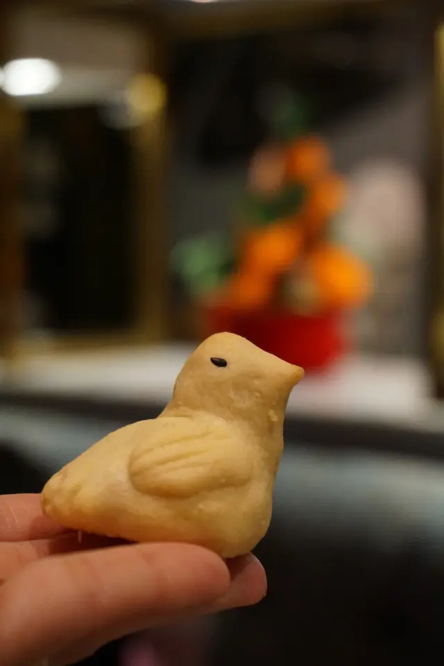鴿吞鳳梨($59/3件)同是以造型取勝。台灣鳳梨酥的變奏,三隻小小小小鳥,置於在鳥籠當中是何等的趣致,不過尺寸上是的骰了點,是能一口吞掉的迷你程度。上桌時仍是暖暖的,咬下鬆化而不酥膩,鳳梨餡清甜而軟綿,跟台灣的鳳梨酥有異曲同功之妙。