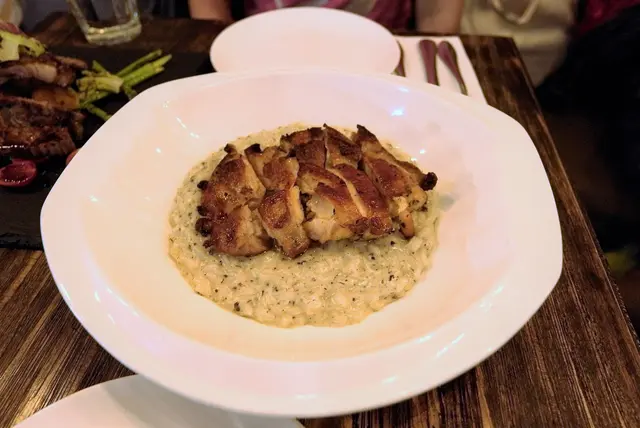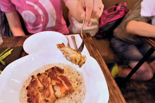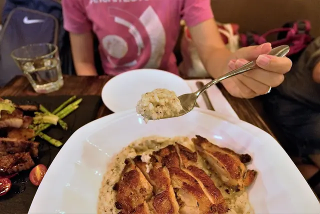 雞扒的size有點嚇人,足足可以蓋過一半意大利飯的表面積,實在誇張;黑松露的香氣與烤雞扒的香味一同撲鼻而來,未食已經令人唾涎;