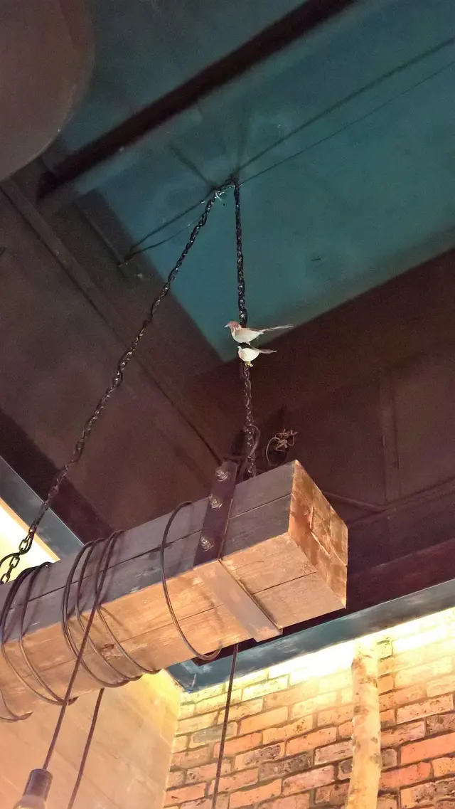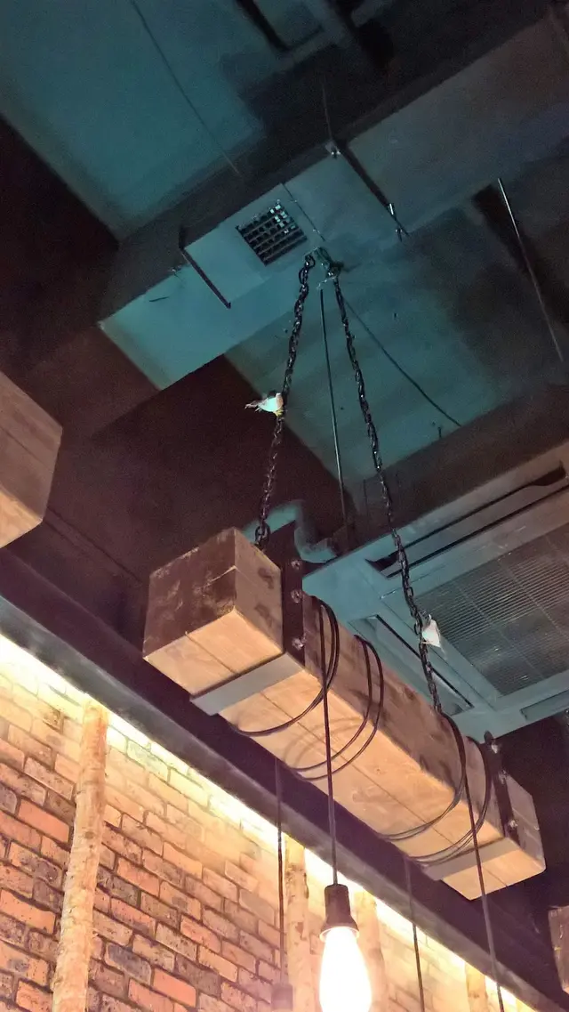 可能負責人覺得有整間餐廳只有木頭實在有點單調死寂,Step發現在天花的吊燈上放有數只雀鳥作裝飾,令這片以木為主題的室內地方加添了幾分生氣,可說是神來之筆呢…