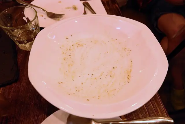 在進食意大利飯時,濃郁的黑松露香味撲鼻而來,可以看到每一粒米飯皆黏著烏黑色的黑松露,實在誇張,可以看出用料充足,進食時也可以嗅到黑松露的香氣,不過入口後卻被濃厚奶油帶的香味與味道所蓋過;
