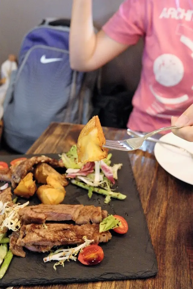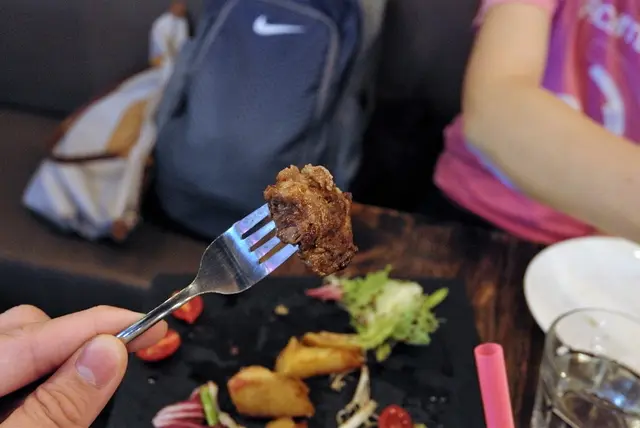 Step很喜歡蔬菜中的露荀,一來份量不少,數一數差不多有8-9條,二來露荀清甜爽口,在吸收了牛柳肉汁之後味道份外惹味,令人一吃愛上;而炸薯仔粒也是非常味美,進食時可以感受到外脆內軟的口感,加上還有牛柳肉汁的加持,一樣滋味惹味,正啊!!