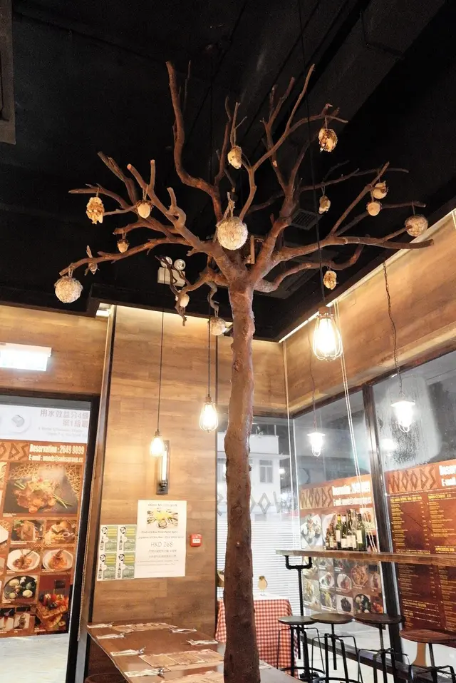 進內後,內裡的裝潢與門口的風格差不多,四周盡是圍繞著木材,當日最令Step和娘子深刻的可說是餐廳的樓底甚高,增強了整體的空間感,也是因為高樓底的關係,WOODS在餐廳中間放了一棵大樹,而大樹的四周就被木檯所包圍著,感覺非常像在田園中用膳一樣,唯一可惜是大樹就只有wood而沒有葉子,如果有的話就令田園的感覺更為實在;
