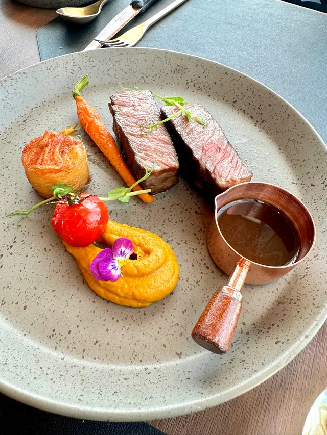 牛小排嘅細膩肉質和酥脆外皮,再配搭埋波特酒醬的濃郁酒香和酸甜口感,令到整道菜口感更豐富。