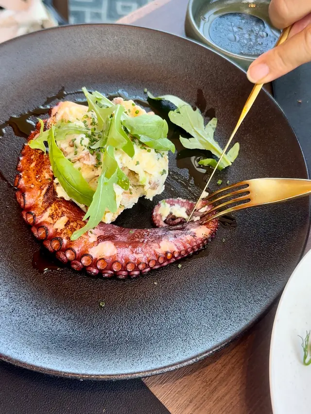 八爪魚烤到非常可口兼好軟熟,搭配埋薯仔沙律,而沙律裡面更有埋洋蔥粒,令到口感層次好豐富。