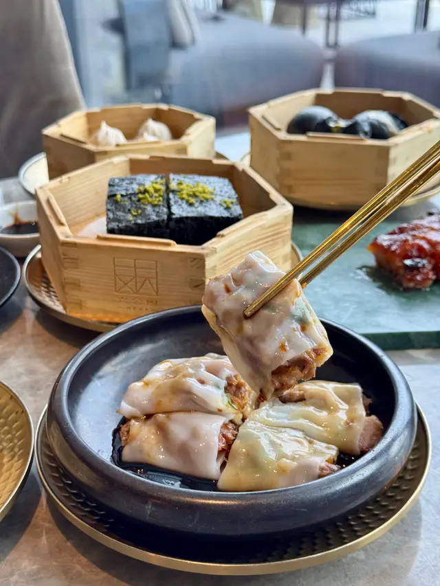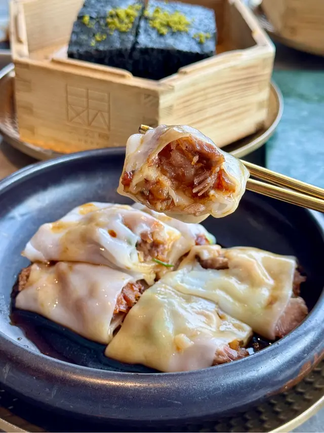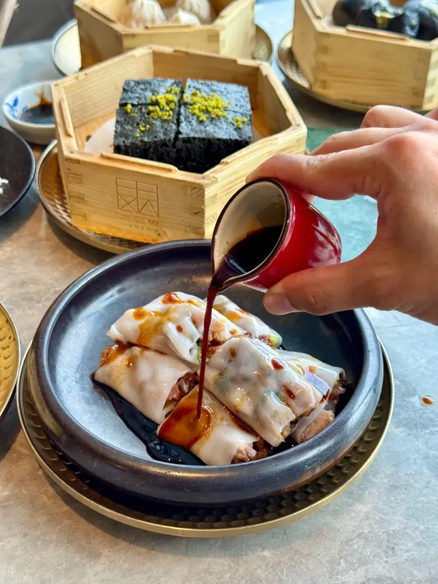 腸粉包裹著蜜汁叉燒,鹹甜交融,配上特製醬油,口感順滑,令人一啖接一啖。