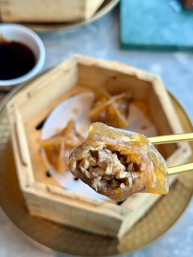 野菌餃晶瑩剔透,餃皮包裹著香氣撲鼻的餡料,加入松露提升層次,入口鮮香濃郁,齒頰留香。