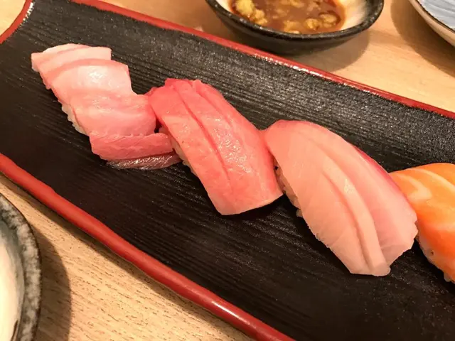 大吞拿魚腩和中吞拿魚腩相當好吃,用料絕不馬虎,它是厚厚的一片來,絕不吝於成本。唯獨是海膽較不算新鮮,吃起來沒有鮮甜味,略有點苦,是為失分的地方。