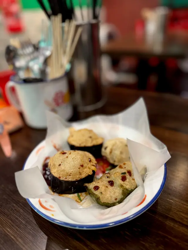即叫即釀即炸,新鮮熱辣辣 (茄子、魚肉球、青椒)