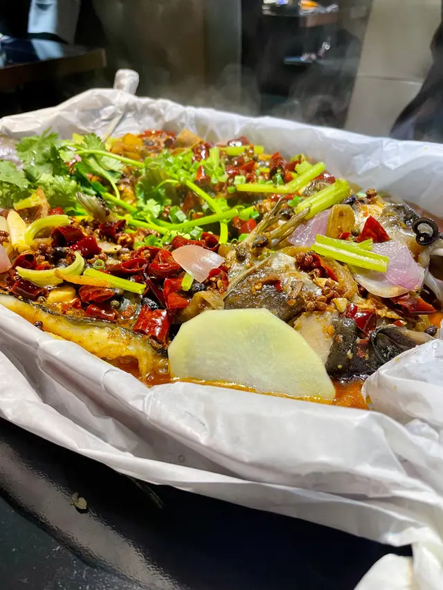 紙包魚打開一瞬間已經聞到好香嘅味,魚肉非常嫩滑唔老,冇腥味,魚肉容易起骨,調味係標準川味風格,麻辣鮮香兼備,辣度適中(我哋叫咗小辣)唔過火,魚肉吸滿左濃郁的湯汁精華,每一口都好惹味,連埋厚身魚肉,口感一流☺️