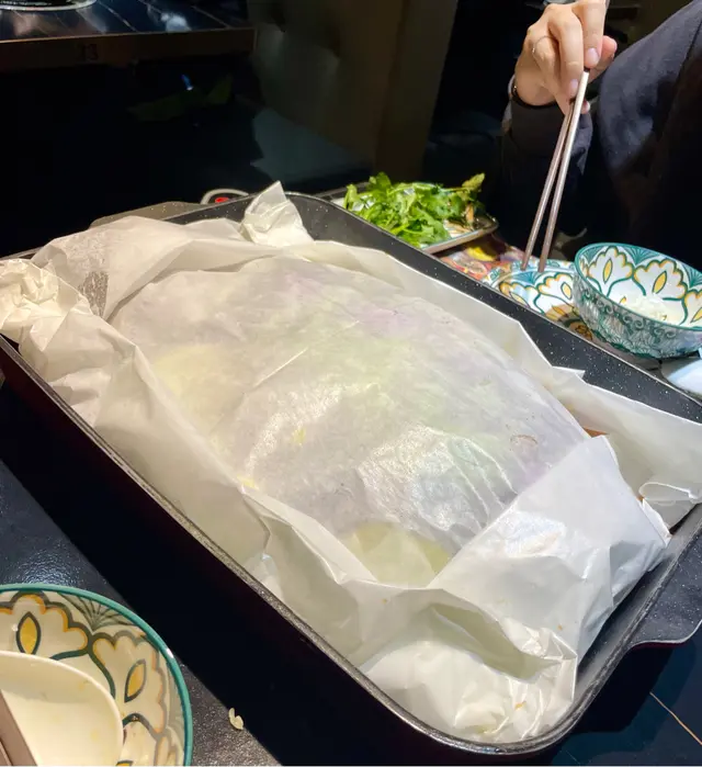 食呢個菜預咗要少少時間,因為紙包魚會成條上,喺我哋面前蒸幾分鐘,蒸完店員就會幫手炒醬。同埋條魚好厚肉,俾啲時間佢熟左,更加好食😋 芫荽同蔥會分開上,如果唔食嘅可以同店員講,不過覺得加咗再香啲,然後芫荽同蔥可以擺埋一邊唔食。