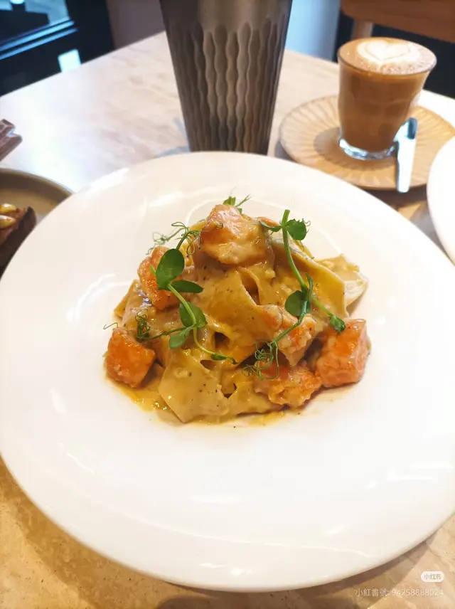 餐廳使用手工製作的寬條麵🍝,口感煙韌,寬如緞帶的麵條,完美兜住濃郁的奶油醬汁🧉。煎三文魚🐟塊外層焦脆,內裡泛着半透明橘紅光澤🧡,鮮爆破的瞬間與奶香交織,彷彿嚐到了挪威峽灣的冷冽與豐饒🤩