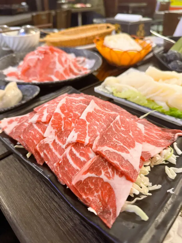 一放係檯有煙霧💨寶盒内有手切牛三角、新鮮牛胸尖、新鮮牛展、頂級雪花肥牛、牛黃喉、牛肉粒、牛舌⋯ 啲牛肉靚得來又好味😋而我哋最喜歡的手切牛三角🤤濃濃牛肉味🥩真係夠晒滋味!