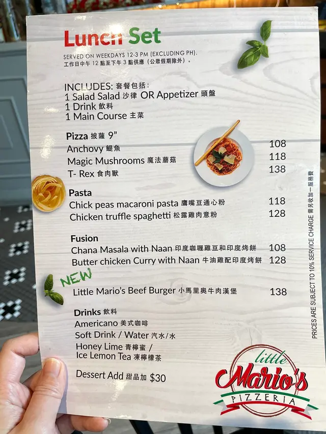 午市套餐都有素食薄餅和意粉揀。