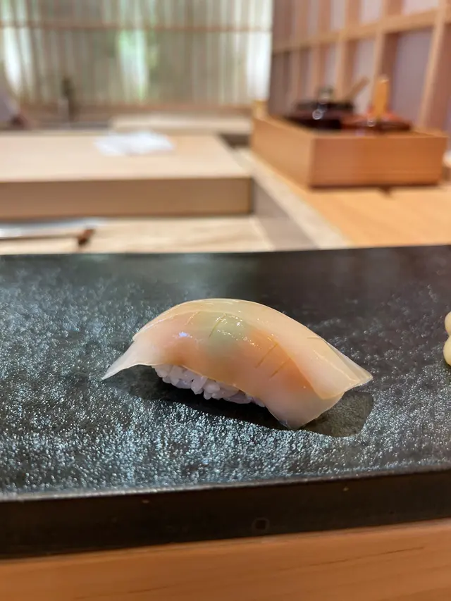 🍣鱿鱼-中间包着海胆和绵软的鱿鱼搭配,口感丰富