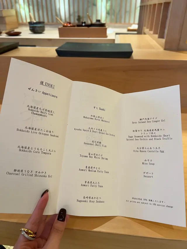 我们午餐套餐包括4款前菜、8款寿司、手卷、汤品及1道甜品。
