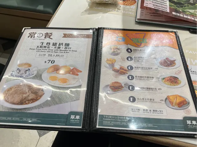 翠華環境闊落、光猛同乾淨,餐牌選擇又多,用QR Code落單好方便,上菜速度又快,份量十足,值得推介