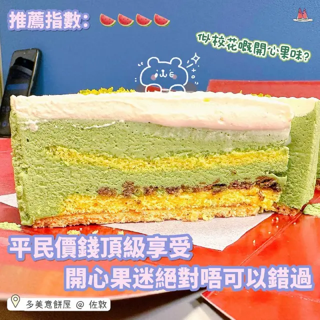 外表睇落無乜特別,但係質素絕對唔止值$28😍 如果將moshimochi開心果tart個種濃郁+aftertaste超強嘅開心果味形容為一個超man嘅大隻佬呢款蛋糕就會係校園劇出現個啲好斯文嘅女神校花 佢陣開心果味唔濃郁,淡淡哋但係好清香,aftertaste唔強但係好longlasting😋 面頭層cream同蛋糕嘅口味一樣,都係偏淡,唔太甜,好輕盈,甚至食完都好似無食咁,蛋糕中層夾咗2層檸檬餡,好清新,微微嘅酸味帶出到開心果嘅果甜,加埋餅底好酥脆,口感好豐富👍