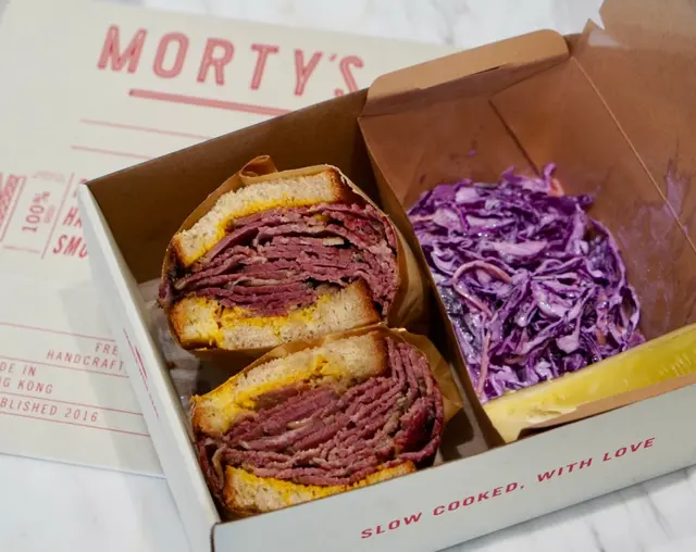 烟熏牛肉作为招牌,品质当然不错,但腌制程度有点深,吃起来偏咸且重口。肉质默认肥瘦均匀,也可选纯瘦或者偏肥。调味就是毫无难度的黄芥末酱,黑麦面包普通。