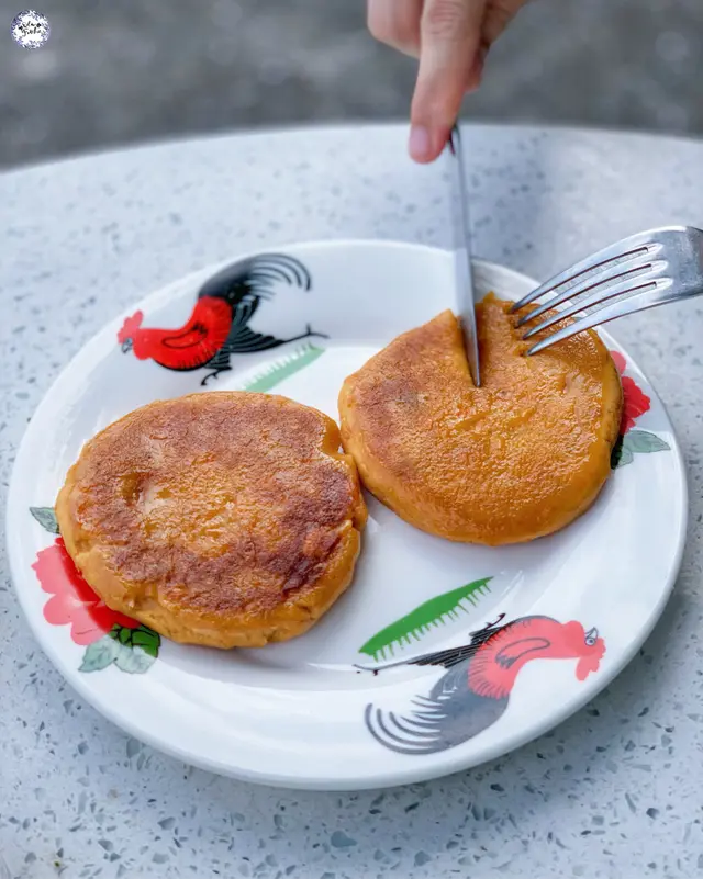 煎至金黃香甜的南瓜餅,軟糯的程度用刀切也反應不過來,一口咬下,南瓜內餡煙煙韌韌,越嚼越起勁🥰