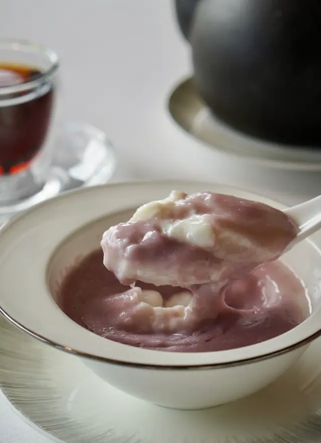 奶味不算特别浓厚,与蛋白的清润相互制衡,是我的菜。凝结出类似奶冻的口感,质地均匀,每一口都不水垮。绵甜细腻的芋泥更是让它大放异彩,陶醉地咂吧两下,还能抿到细碎的香芋颗粒。吃完深信不疑,炖奶会是芋泥最好的归宿。