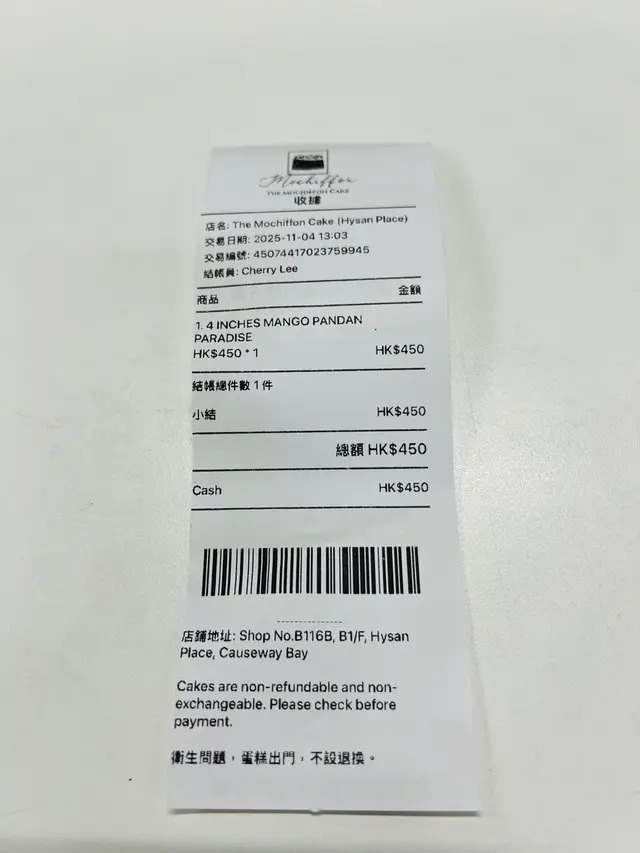 👏🏻香港No.1麻糬戚風蛋糕 ___alliwanttoeat等級42025-11-06137 浏览 关注 佢哋真係香港No.1 ✅賣麻糬戚風蛋糕嘅先鋒 我最初認識係因為同事派佢哋嘅散水餅 覺得好好味😋之後一直有留意佢哋😚 佢哋仲有4”, 6”蛋糕& 芭菲…….蛋糕完全冇人工化學假甜味道 真材實料👍🏻 以唔同層次口感味道豐富味蕾🤤🤤🤤 👏🏻今年生日 成為咗我必選蛋糕😍 上網訂再去門市攞 非常方便👍🏻 門市其實都有部分產品 可以選擇 款式都唔會太少 都幾貼心🫶🏻 🎂4吋 香甜芒果斑蘭 $450蛋糕非常鬆軟👍🏻 淡淡嘅斑蘭清香味道 椰子忌廉 味道濃郁細滑 芒果粒食落清新香甜 加埋芒果忌廉 芒果味更濃郁更突出😋 最鍾意就係佢哋嘅招牌煙韌麻糬 真係軟糯又好味🤤 而且一啲都唔漏 佢哋嘅蛋糕真係非常高質🫶🏻 令人滿足🥰11以上食记乃用户个人意见 , 并不代表OpenRice之观点。赞好分享👏🏻香港No.1麻糬戚風蛋糕 The Mochiffon Cake https://s.openrice.com/QrbT0DXDV00检举 张贴 评分5味道5环境4服务5卫生4抵食用餐途径外賣自取用餐时段其他庆祝纪念生日