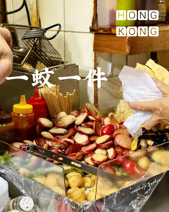 主打做「一蚊一件 煎釀三寶」,款式有青椒、茄子、雲吞皮、紅腸、豆腐、魚蛋等,睇住前面每個人至少叫三四十件🫣。